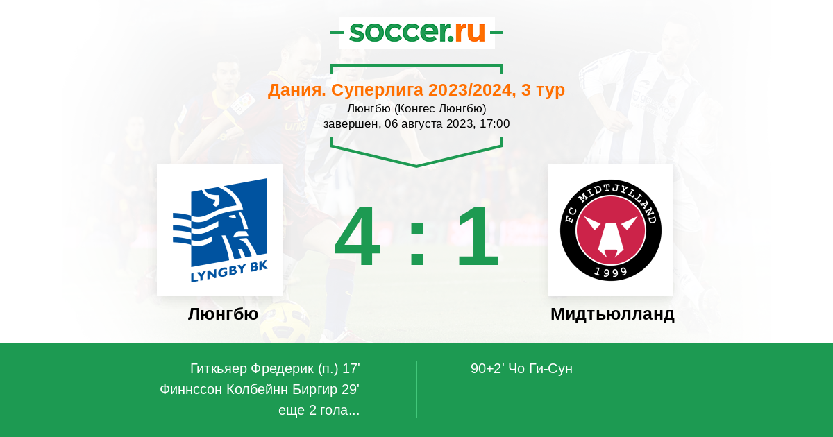 90+2' (4:1) Чо Ги-Сун (10) (Дальсгор Хенрик (14))