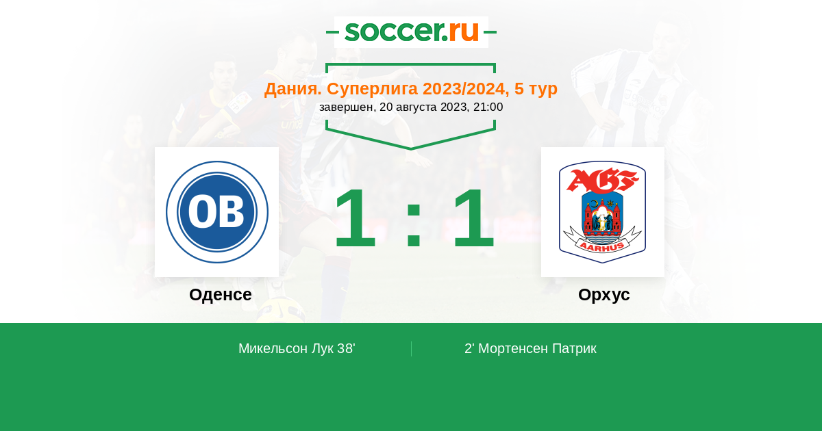 2' (0:1) Мортенсен Патрик (9) (Беиймо Феликс (2))