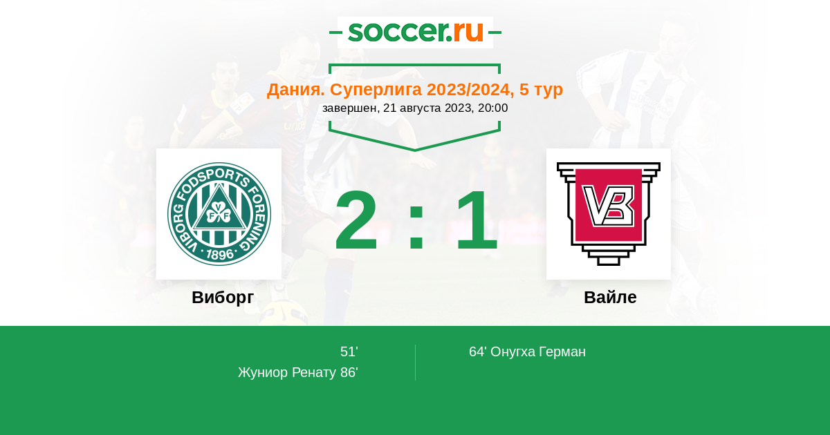 64' (1:1) Онугха Герман (9) (Киркегор Кристиан (10))
