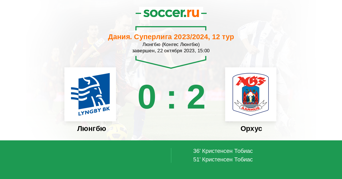 36' (0:1) Кристенсен Тобиас (31) (Андерсон Микаэль (8))