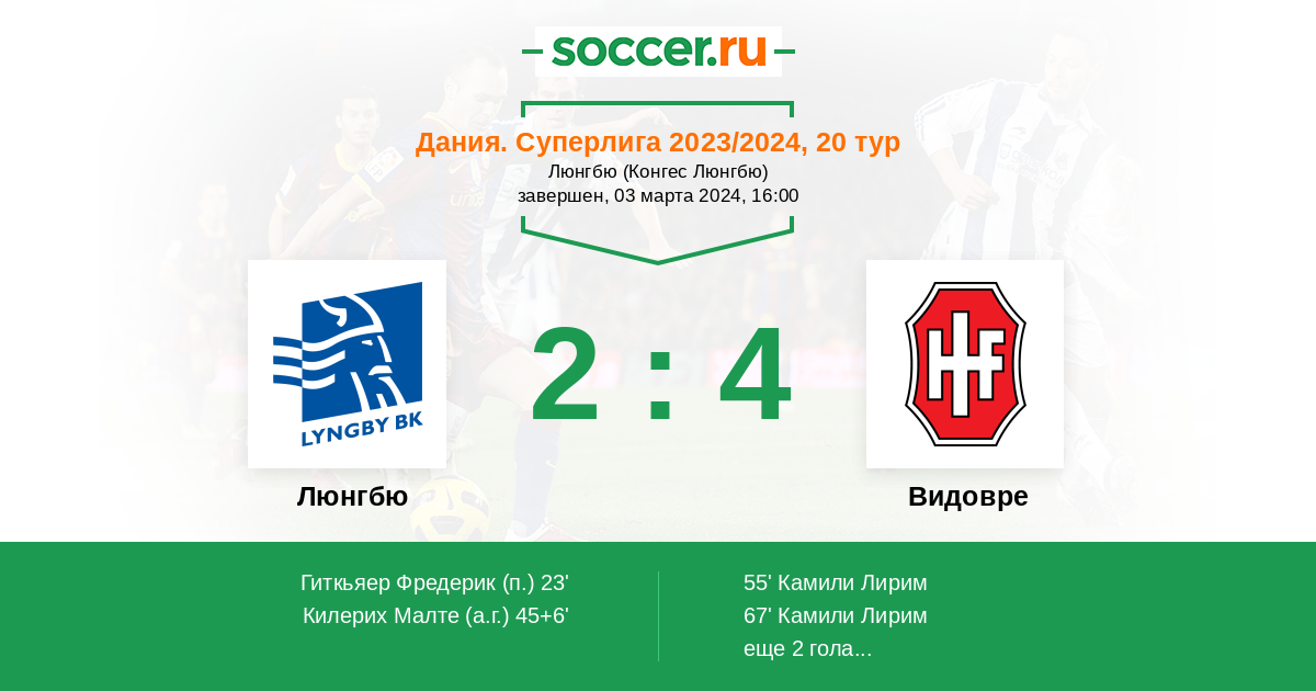 55' (2:1) Камили Лирим (7) (Нильсен Марк (26))