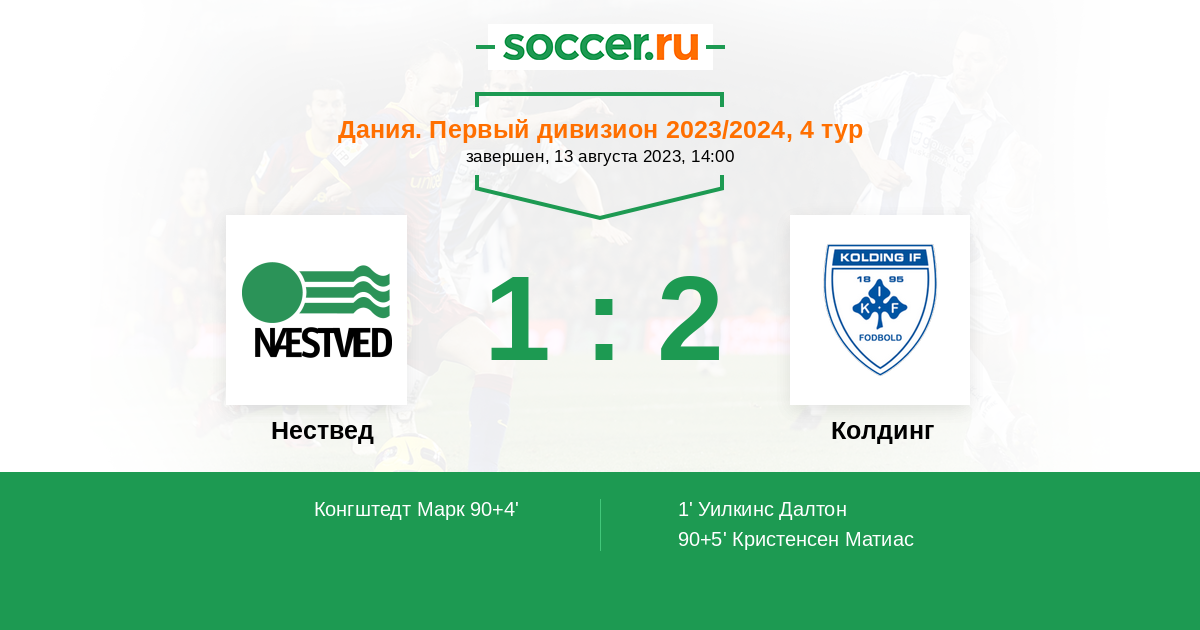 90+5' (1:2) Кристенсен Матиас (15) (Мортенсен Кристиан (10))