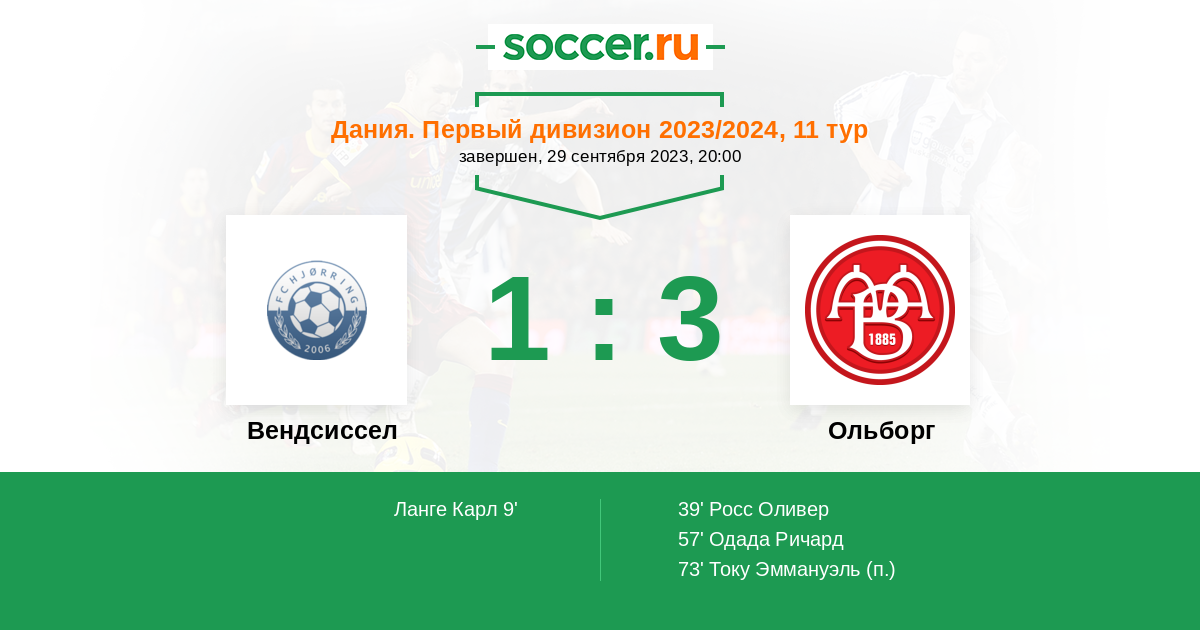 57' (1:2) Одада Ричард (16) (Андерсен Лукас (10))