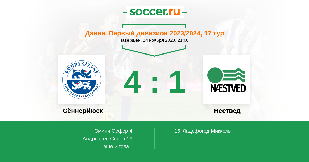 16' (1:1) Ладефогед Миккель (11) (Най Абдули (17))