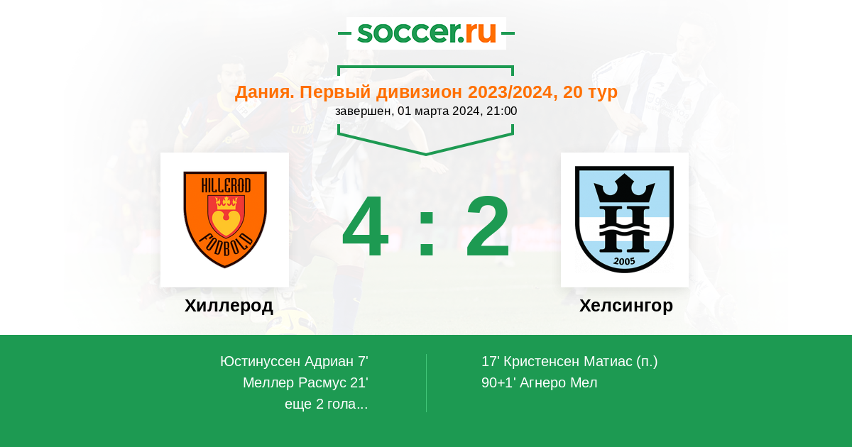 21' (2:1) Меллер Расмус (2)