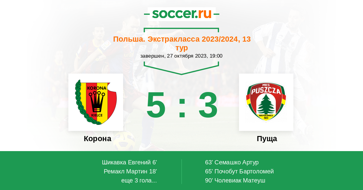 63' (3:1) Семашко Артур (9) (Хайда Войцех (70))
