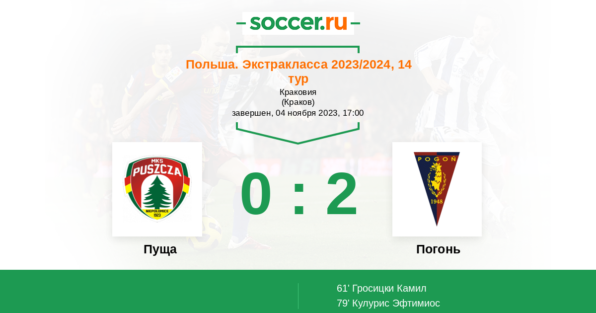 Запасные: 17 Форналчик Мариуш (с 75'), 25 Лисовски Войцех (с 75'), 61 Смолински Кацпер (с 81'), 41 Столярски Павел, 4 Леонардо Боргес, 10 Захович Лука, 71 Корчаковски Олаф, 81 Клебанюк Бартош, 73 Пшиборек Адриан