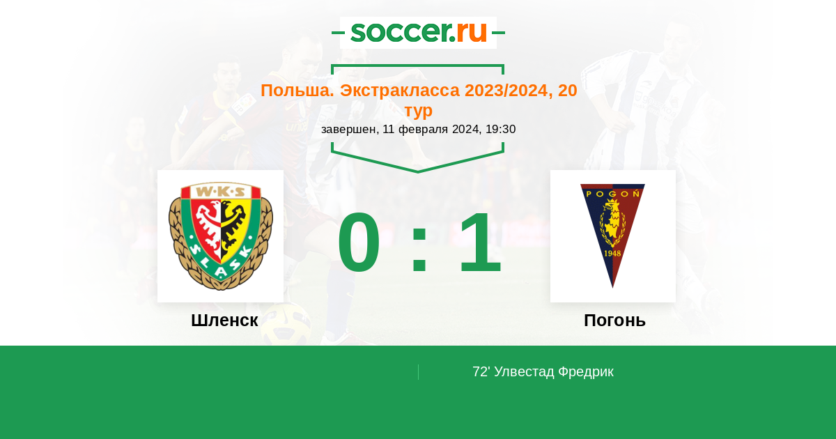 72' (0:1) Улвестад Фредрик (8) (Гросицки Камил (11))