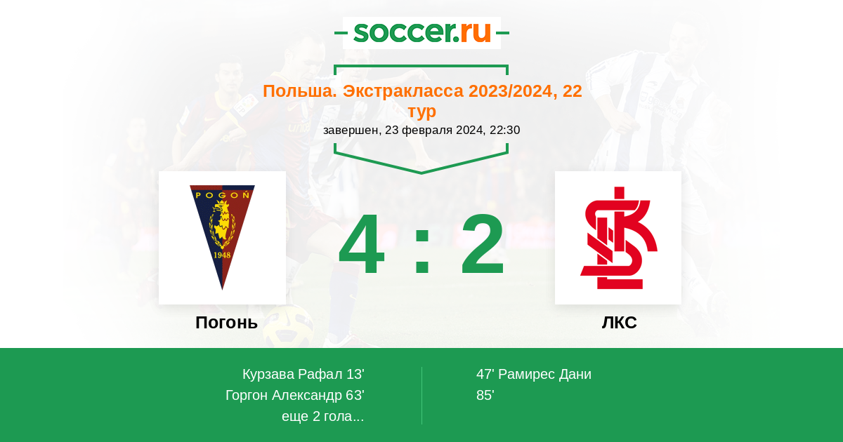 13' (1:0) Курзава Рафал (7) (Пшиборек Адриан (73))