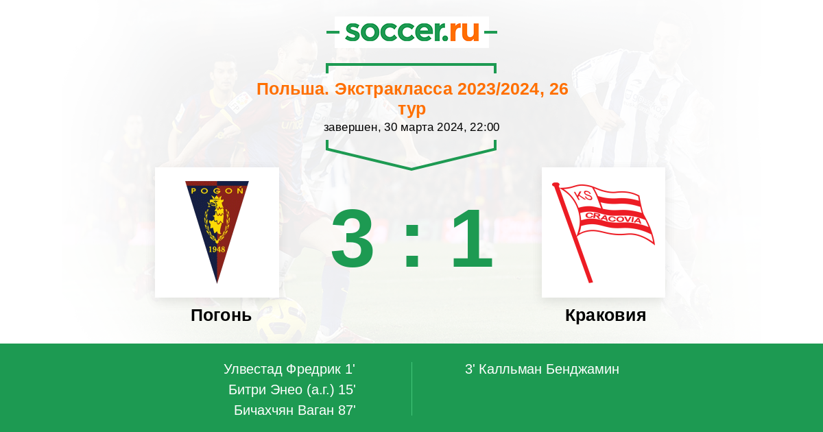 Запасные: 6 Атанасов Яни (с 59'), 25 Какабадзе Отар (с 59'), 7 Макух Патрик (с 70'), 10 Ракочи Михал (с 70'), 63 Розга Филип (с 88'), 15 Глик Камил, 72 Колец Бартломей, 17 Бочнак Матеуш, 13 Мадейски Себастьян