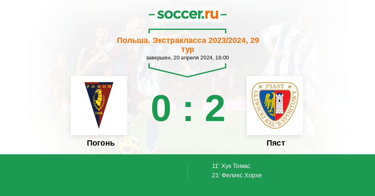 21' (0:2) Феликс Хорхе (7) (Пырка Аркадиуш (77))
