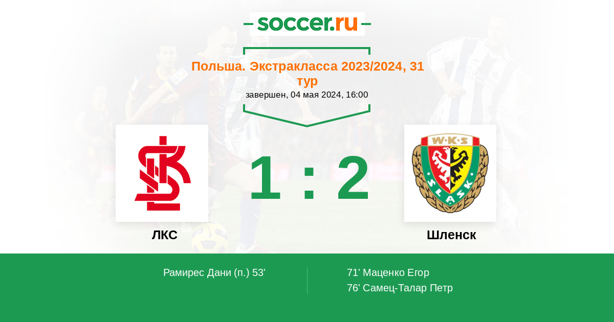 76' (1:2) Самец-Талар Петр (24) (Езиерски Якуб (29))