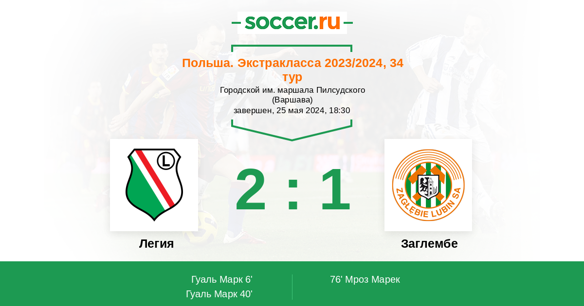 Запасные: 21 Пиенко Томаш (с 46'), 35 Коцаба Филип (с 72'), 18 Муньос Хуан (с 72'), 27 Клудка Бартломей (с 85'), 23 Кужтал Патрик (с 90+3'), 55 Луиш Мата, 11 Возняк Аркадиуш, 16 Булеца Сергей, 22 Вейро Шимон