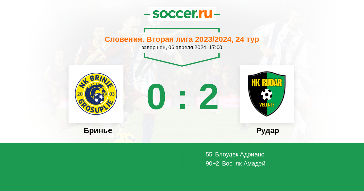 Запасные: Шпаровец Анже (с 63'), Ерин Лука (с 63'), Залазник Альяж (с 76'), Ристич Алекс (с 84'), Жрнеч Ник (с 84'), Тробец Урбан