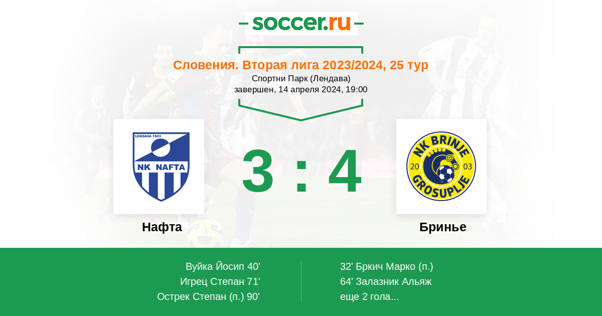 Запасные: Залазник Альяж (с 46'), Дергич Айдин (с 68'), Шпаровец Анже (с 75'), Ристич Алекс (с 83'), Жрнеч Ник (с 83'), Тробец Урбан