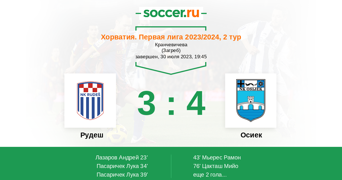 43' (3:1) Мьерес Рамон (13) (Буквич Домагой (39))