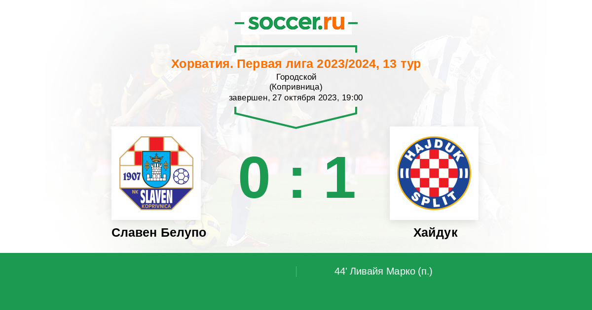 44' (0:1) Ливайя Марко (10)