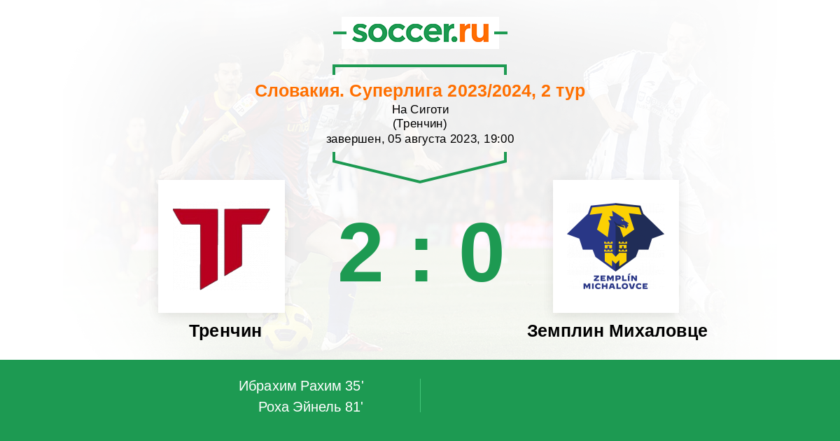 35' (1:0) Ибрахим Рахим (20) (Роха Эйнель (7))