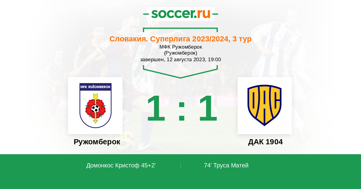 74' (1:1) Труса Матей (46) (Андзуана Йоан (17))