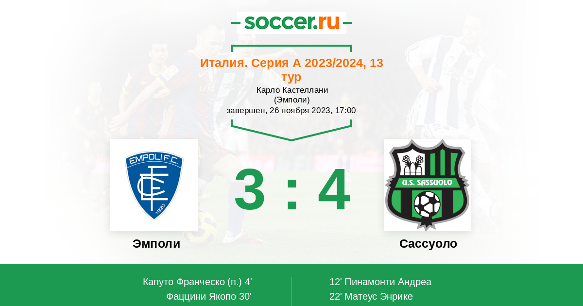Гол90+2' (3:4) Берарди Доменико (10) (Винья Матиас (17))