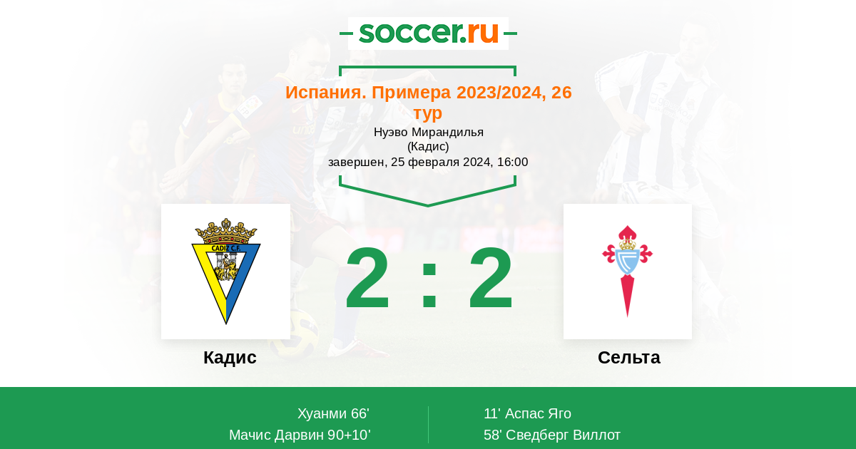 58' (0:2) Сведберг Виллот (19) (Санчес Ману (23))