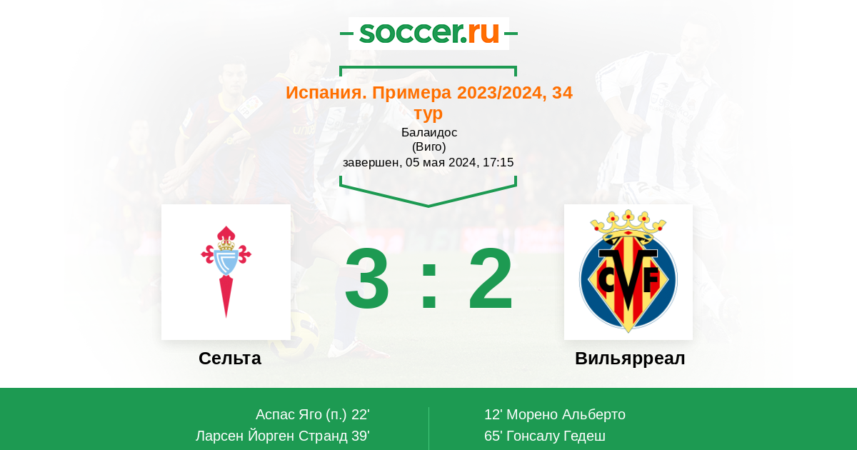 Запасные: 21 Ристич Михайло (с 46'), 14 Де Ла Торре Лука (с 46'), 11 Черви Франко (с 65'), 12 Дувикас Анастасиос (с 80'), 7 Перес Карлес (с 80'), 28 Домингес Карлос, 24 Родригес Мигел, 13 Вильяр Иван, 30 Сотело Уго, 9 Альенде Тадео, 4 Нуньес Унаи, 20 Кевин Васкес