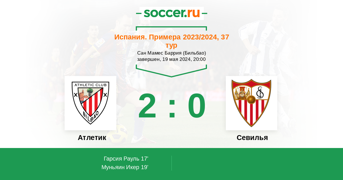 19' (2:0) Муньяин Икер (10) (Уильямс Николас (11))