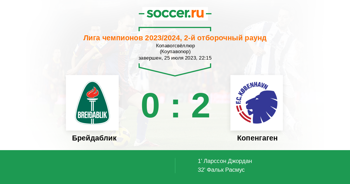 32' (0:2) Фальк Расмус (33) (Ларссон Джордан (25))