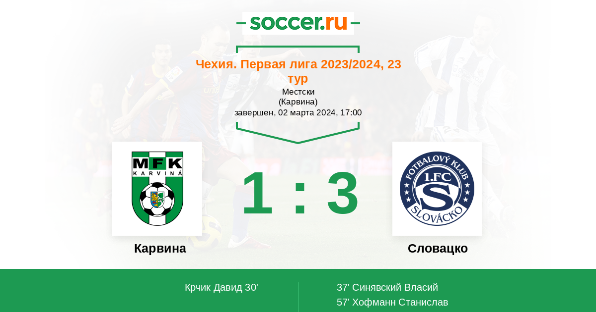 30' (1:0) Крчик Давид (37) (Свозил Ярослав (22))