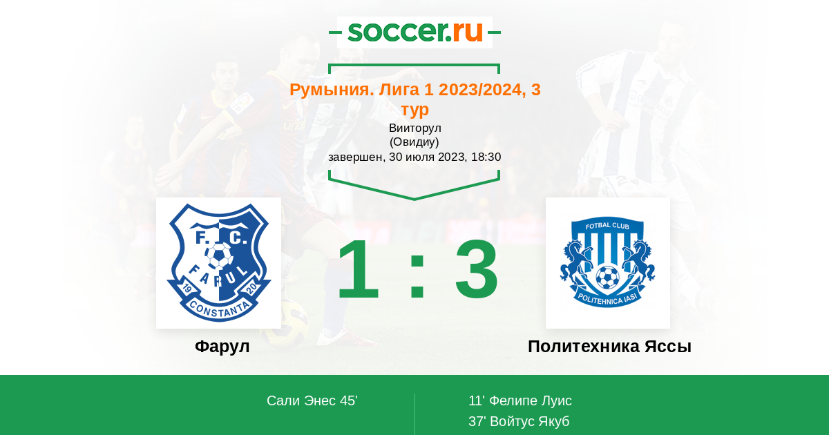 Запасные: 29 Думитраче Валентин (с 46'), 3 Попеску Михай (с 46'), 24 Грамени Константин (с 46'), 19 Андроначе Лука (с 62'), 20 Бенчаиб Амин (с 67'), 66 Гросу Дариус, 12 Айоани Михай Мариан, 99 Дюссо Дамьен, 44 Бассонг Зоран