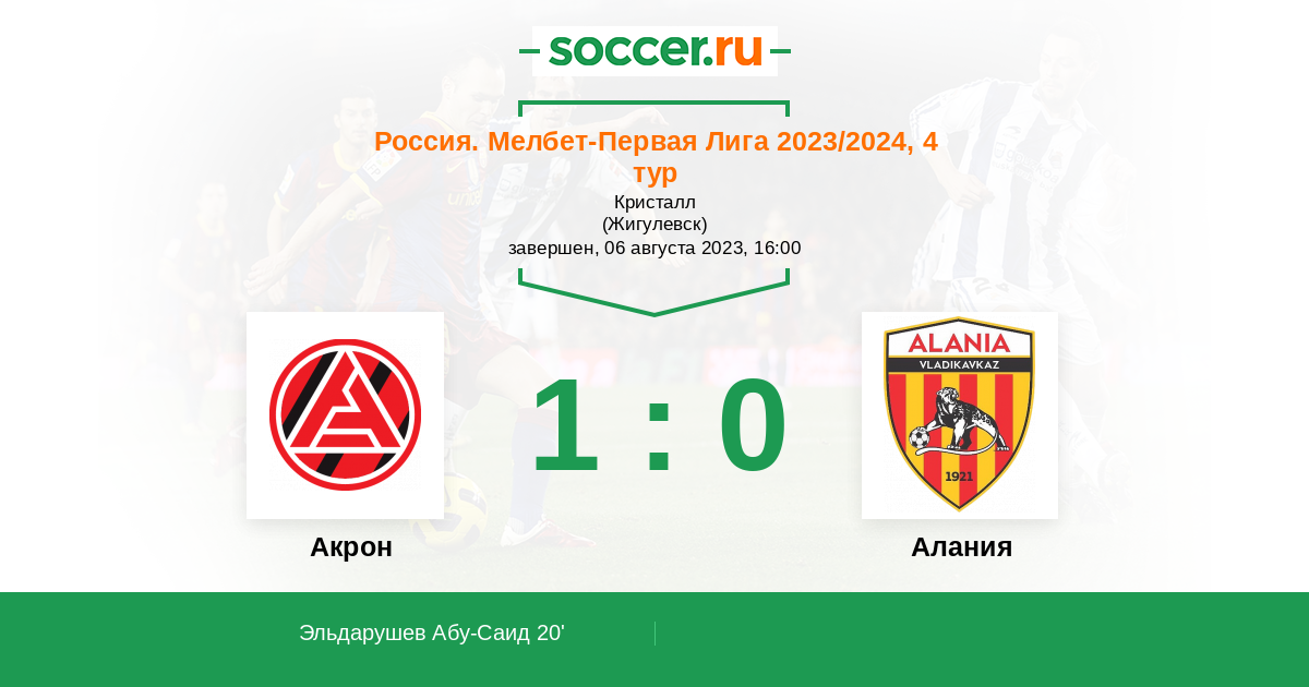 20' (1:0) Эльдарушев Абу-Саид (70)