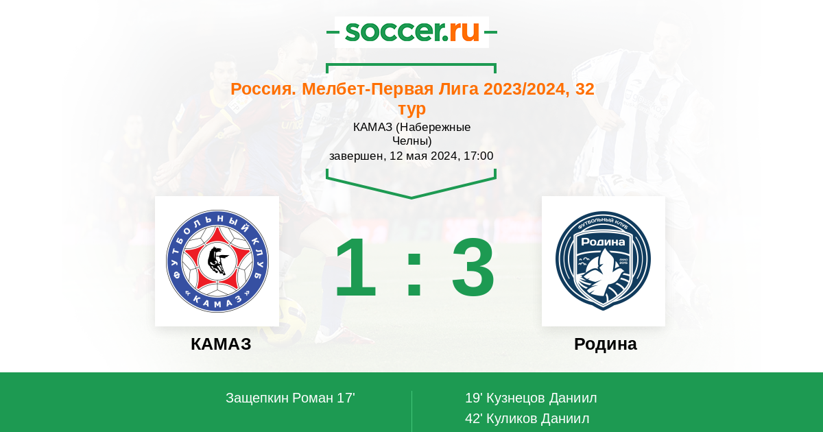 Запасные: 74 Куль Руслан (с 64'), 4 Абрамов Артем (с 78'), 6 Родин Даниил (с 78'), 13 Почивалин Валерий, 20 Полюткин Антон, 37 Ермолаев Николай, 41 Самок Сергей, 43 Иванов Дмитрий, 69 Асылов Ильяс, 99 Герасимов Дмитрий