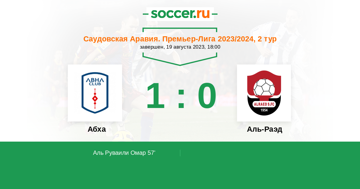 57' (1:0) Аль Руваили Омар (90) (Камано Франсуа (11))