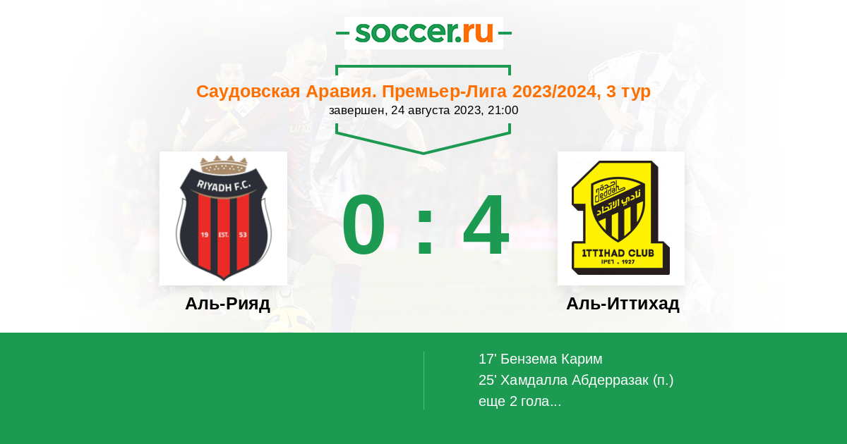 90+3' (0:4) Аль-Амри Салех (77) (Бензема Карим (9))