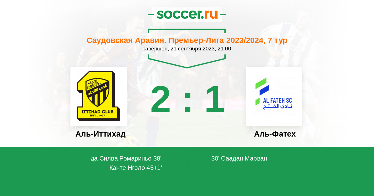 38' (1:1) да Силва Ромариньо (90) (Канте Нголо (7))