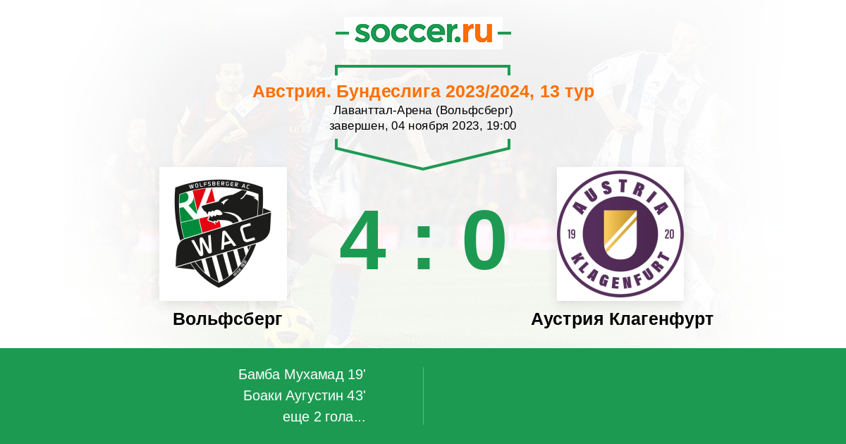 75' (4:0) Боаки Аугустин (20) (Пьезингер Симон (8))
