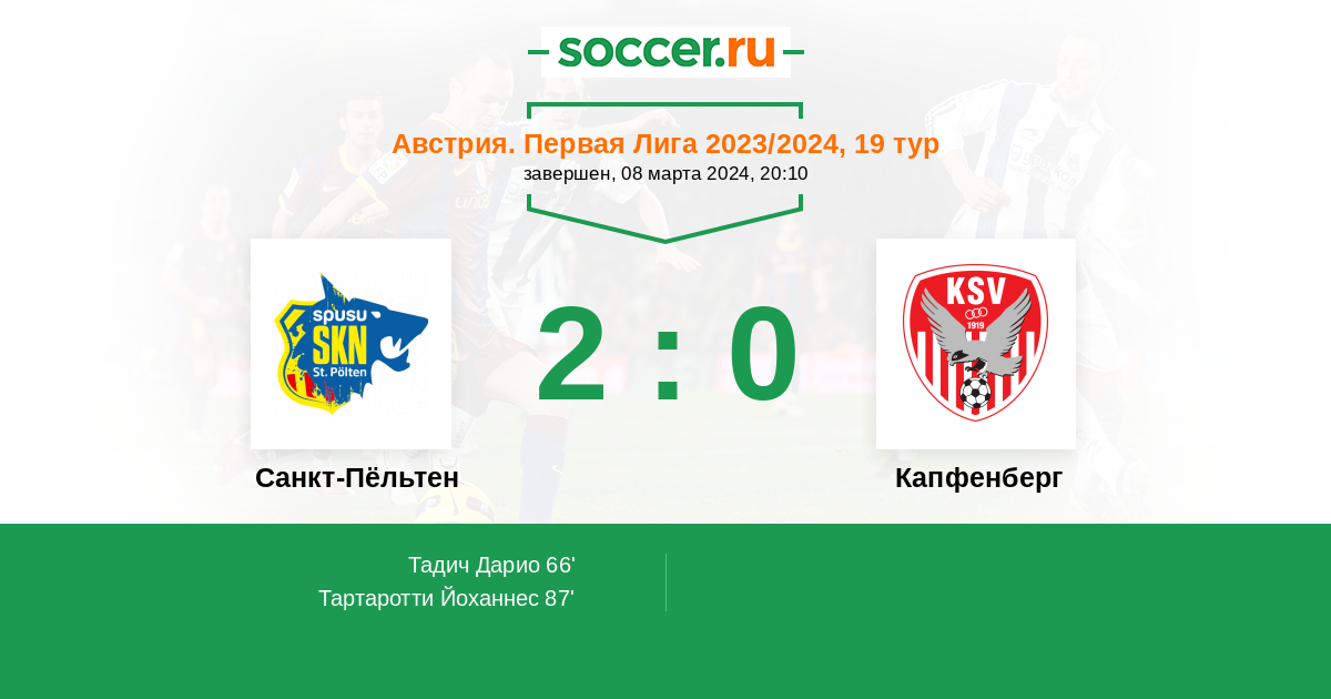 87' (2:0) Тартаротти Йоханнес (17) (Стендера Марк (11))