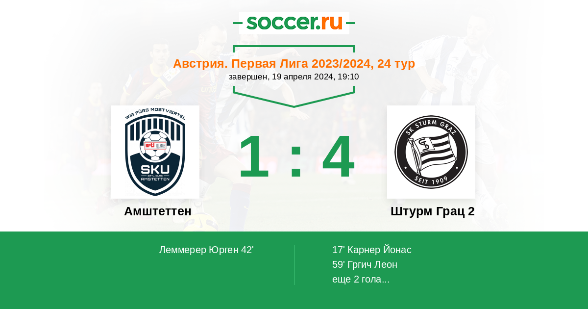 42' (1:1) Леммерер Юрген (9) (Вексельбраун Доминик (47))