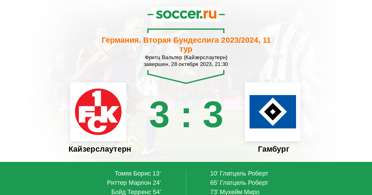73' (3:3) Мухейм Миро (28) (Кенигсдерффер Рансфорд (11))