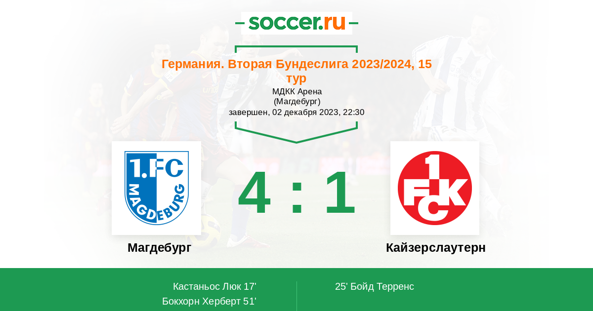 Запасные: 14 Сольдо Никола (с 63'), 19 Ганслик Даниэль (с 63'), 23 Херхер Филипп (с 76'), 11 Редондо Кенни (с 76'), 27 Лобингер Лекс-Тайгер, 1 Люте Андреас, 21 Цук Хендрик, 10 Клемент Филипп, 37 Дурм Эрик