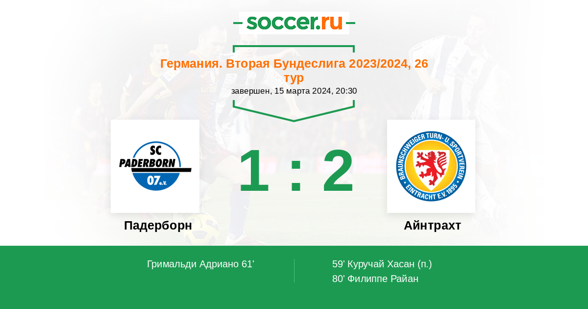 80' (1:2) Филиппе Райан (9) (Донкор Антон-Леандер (19))