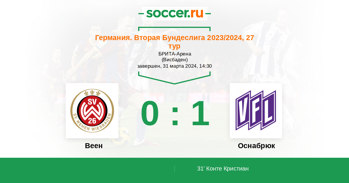 31' (0:1) Конте Кристиан (17) (Кюн Филип (22))