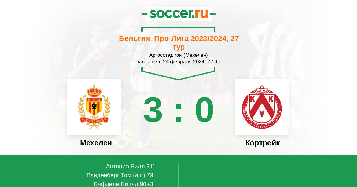 31' (1:0) Антонио Билл (38) (Шуфс Роб (16))