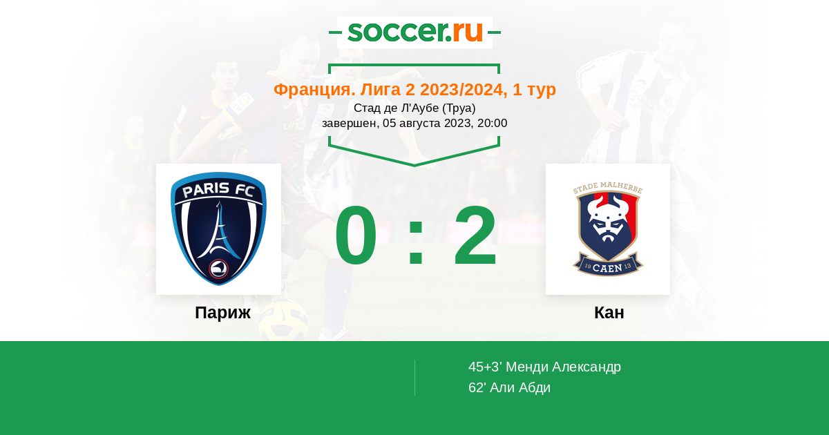 45+3' (0:1) Менди Александр (19) (Анри Валентен (4))