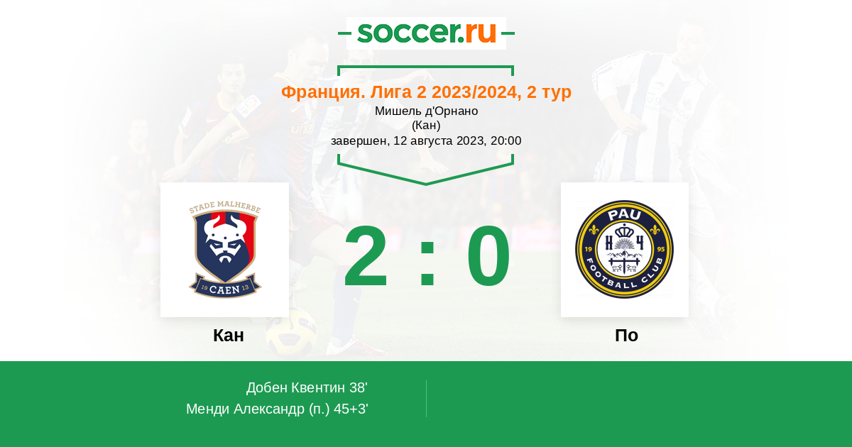38' (1:0) Добен Квентин (6) (Отре Матиас (23))