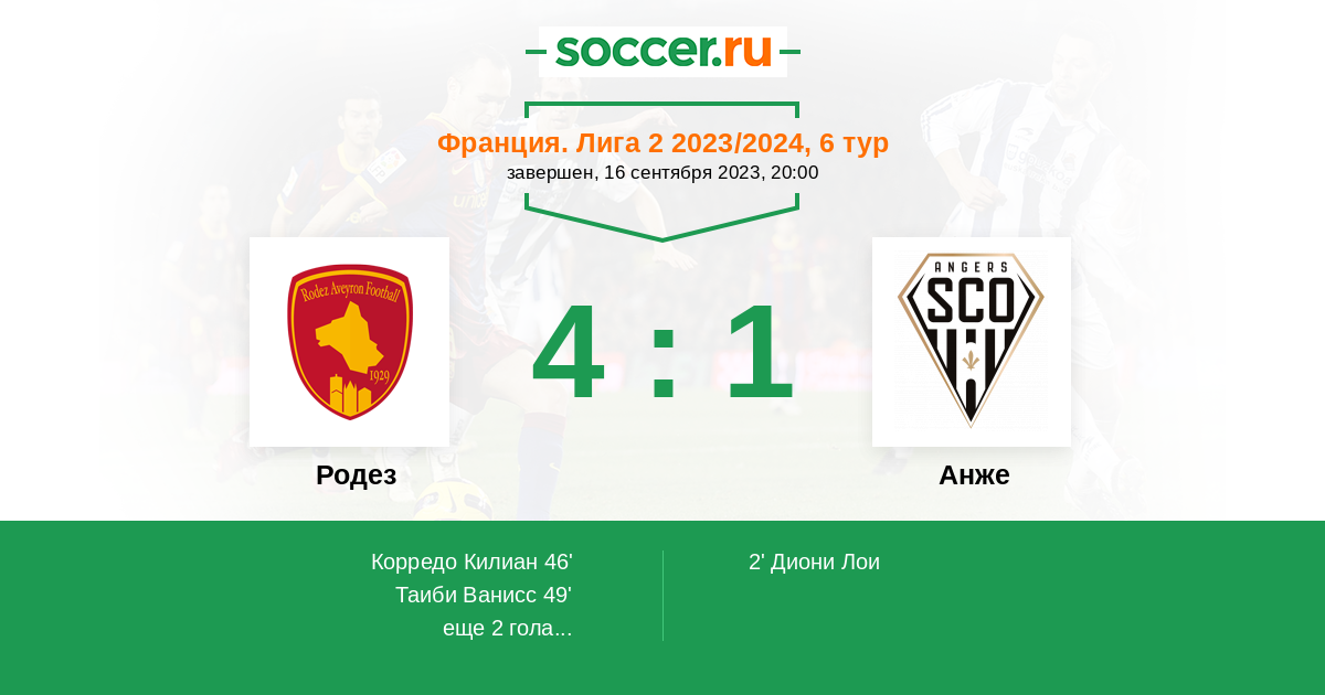 2' (0:1) Диони Лои (9) (Капель Пьеррик (15))