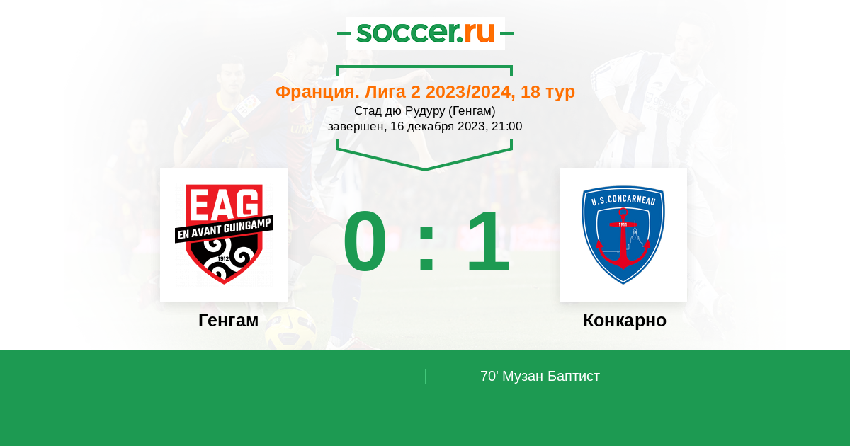 70' (0:1) Музан Баптист (20) (Ба Папе (14))