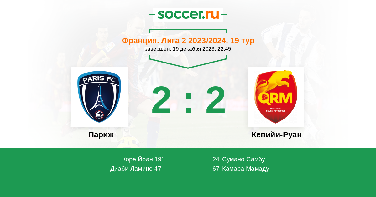 67' (2:2) Камара Мамаду (93) (Кулибали Калифа (19))