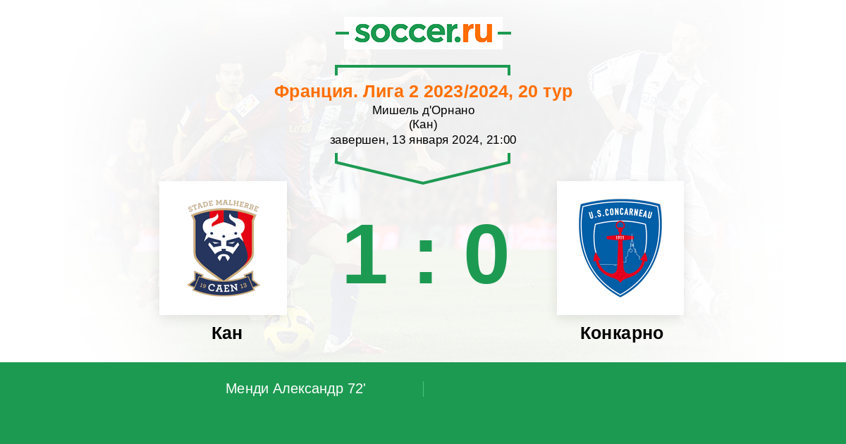72' (1:0) Менди Александр (19) (Ле Биан Микаэль (11))