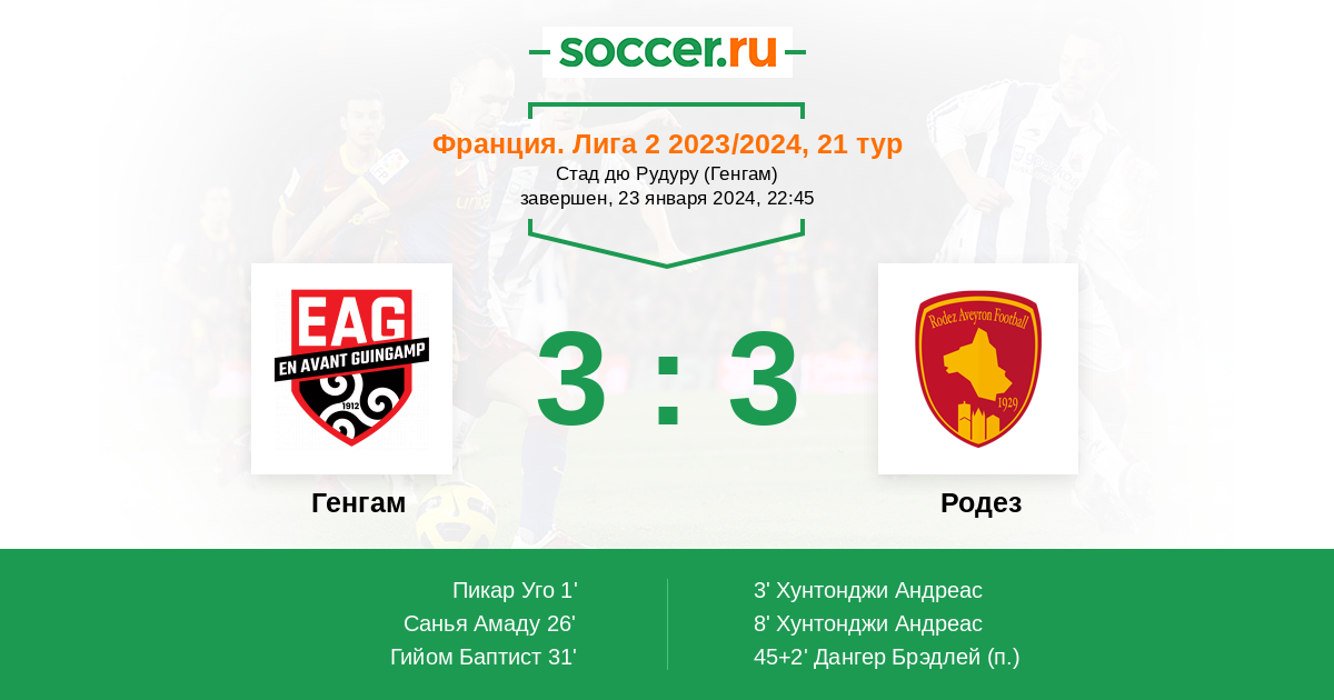 31' (3:2) Гийом Баптист (21) (Пикар Уго (20))